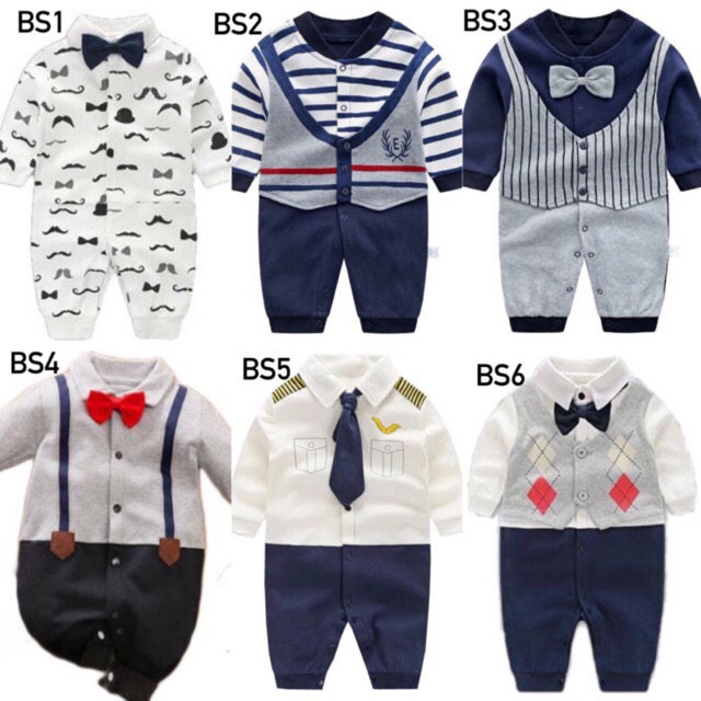Baju Bayi Lelaki Baby Boy Newborn Toddler Bow Tie Gentleman Romper Jumper Sleepsuit Shopee Malaysia